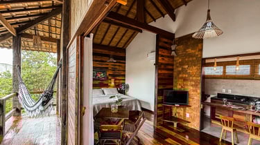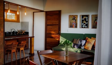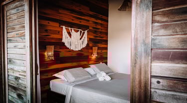 Temos 4 lofts na Nomad Beach House, todos com a mesma disposição, pensados para o seu bem-estar, acomodando até 4 pessoas com todo o conforto. Eles são equipados com uma aconchegante cama king size e duas camas de solteiro auxiliares, ideais para casais, famílias ou grupos de amigos.